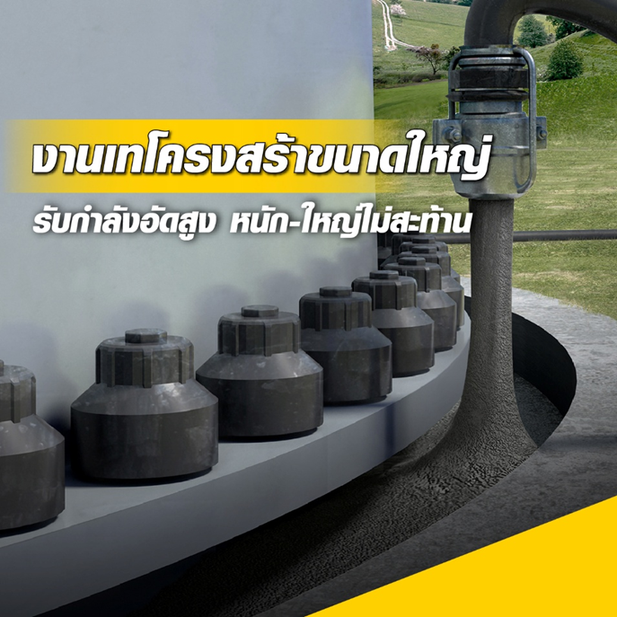 แข็งแกร่ง ทนทาน ไหลตัวดี ไม่หดตัว ไม่แยกชั้น เติมเต็มทุกช่องว่าง รับแรงได้สูง ทนต่อแรงสั่นสะเทือน