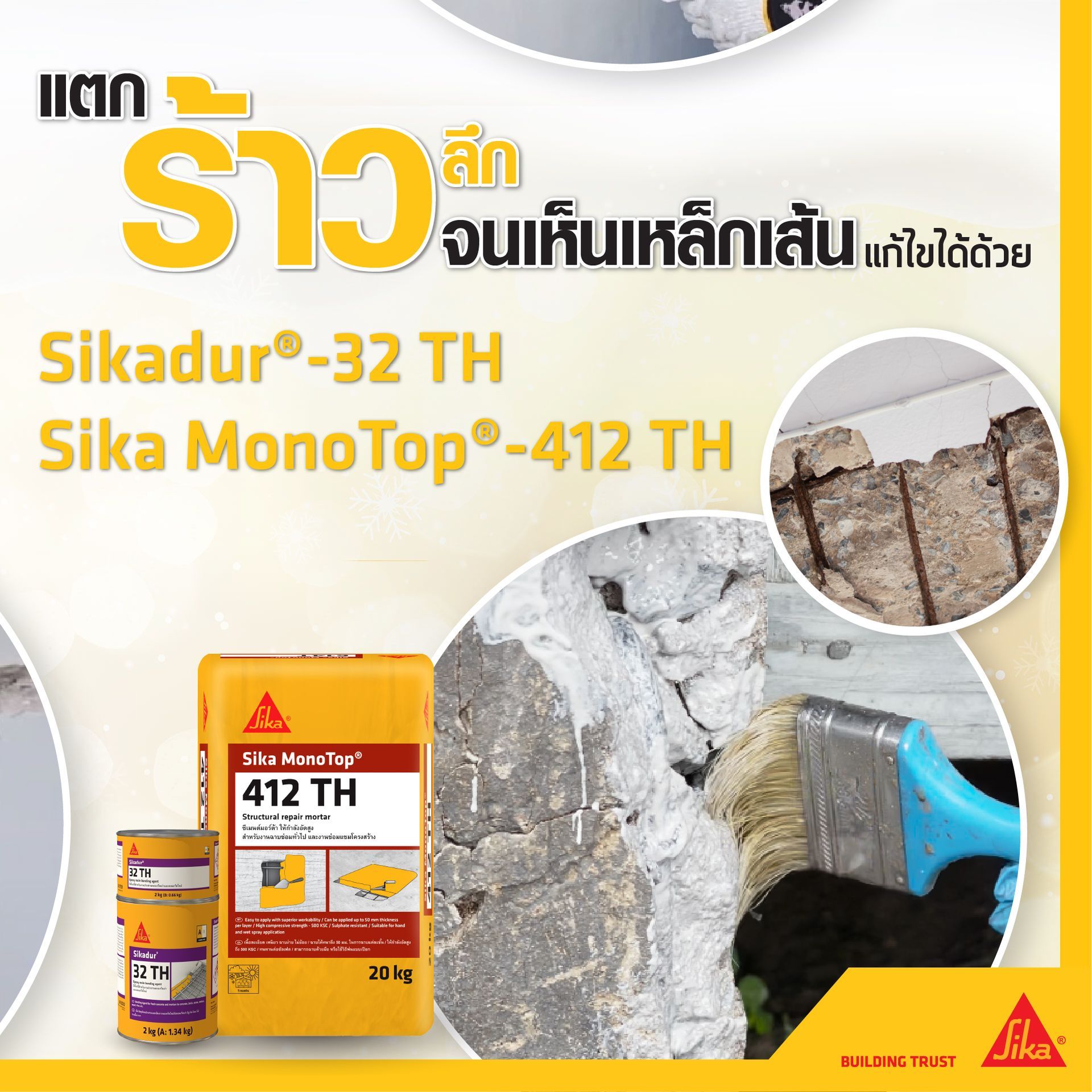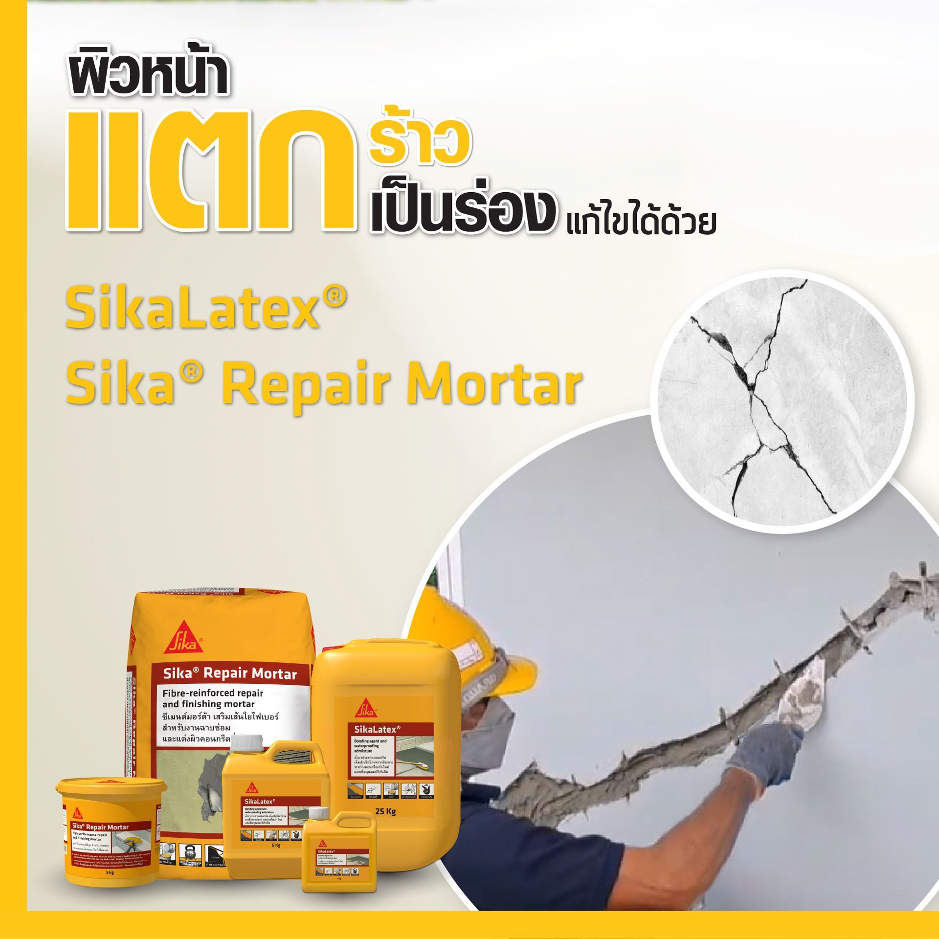 เลือกใช้ผลิตภัณฑ์คุณภาพของซิก้า เคมีภัณฑ์ที่ช่วยดูแลปัญหารอยแตกร้าว ตั้งแต่ร้าวเล็กๆ แตกลายงา ไปจนถึงรอยแตกร้าวจนถึงโครงสร้าง